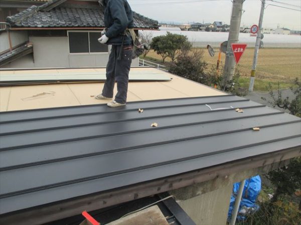 勾配修正を行いガルバリウム鋼板を使用した板金屋根に仕上げました。