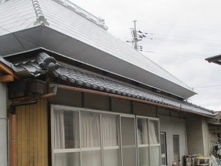 瓦葺き替え工事 岡山県赤磐市 I様邸 工事前前側が古い本葺き、残り3方向も古い和型の日本瓦でした。前側は、樋に瓦が引っかかっている状態で、下地は竹でした。かなり傷みが進んでいる状態でした。工事後4方向とも三州瓦、銀黒に葺き替えしました。下地も竹から、杉板に取り換えました。とてもきれいになり喜んでいただきました。これからも、お客様に喜んでいただけるように、がんばります。